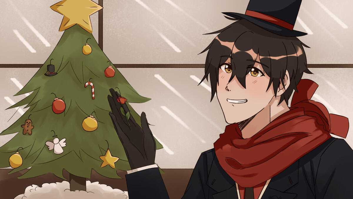 We had just about bought everything we needed on the list, so we were just strolling around Midtown and window shopping. Though, I didn't see much of interest.)C: What a cute display… Is that a mini Christmas tree? The ornaments hanging on it are pretty.L: Are you interested? We still have plenty of time, why don't we go inside?C: Sure, that sounds nice.(We enter the shop and the atmosphere is very calming and warm, the door frames and the countertops have cotton to make it seem like it snowed. Bright white Christmas lights filled the store, giving it a snug feel.)Shopkeeper: Please take your time looking around, there are plenty of items on display for the holidays that we hope you'll find interest in.(I head toward the tree, examining the ornaments on display.)C: Wow, looking at all of these up close they're very intricate and detailed… Do you think we could pick one up for the mansion?L: Shouldn't be a problem, choose whichever one you like, Princess.(Scanning the tree, a particular one caught my eye.)C: A gentleman thief's top hat…(It was a shiny, gold plated top hat shaped ornament with a red metal band.)L: Haha, does this one remind you of me? I'm honored, Cardia. You know, I think I found one that reminds me of you as well.(He tilts a metal rose shaped ornament to me and gives his signature Lupin grin and my lips tilt into a small smile.)C: That's sweet of you to say Lupin, I'm touched that you think of me that way.L: When it comes to you, Princess, you're more beautiful than a garden of roses.Fin